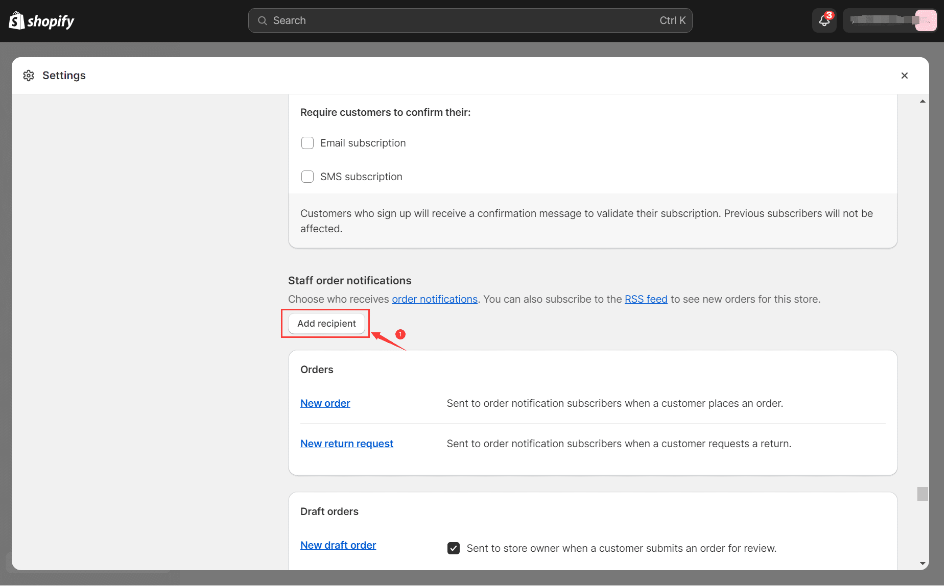 1. login Shopify account—Settings—Account