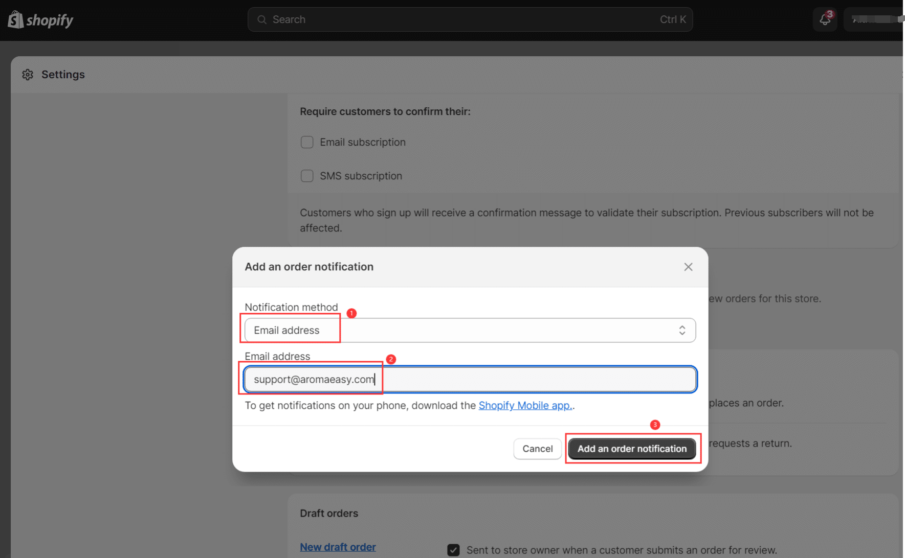 Add an order notification Email address: