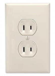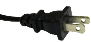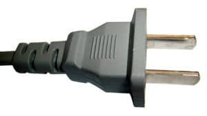 This class II ungrounded plug with two flat parallel prongs is pretty much standard in most of North and Central America. It is known as NEMA 1-15 and was invented in 1904 by Harvey Hubbell II. The plug has two flat 1.5 mm thick blades, measuring 15.9 – 18.3 mm in length and spaced 12.7 mm apart.