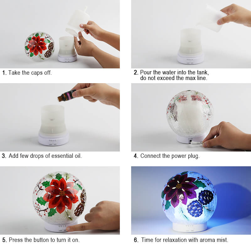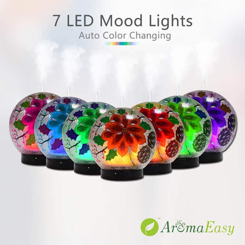 - Gorgeous 3D light effect: With a beautiful crafted Poinsettia design, this essential oil diffuser includes 7-Color Changing LED light. When you turn this diffuser on at night, the light will be an excellent addition to your home decor via a vibrant 3D display effect. The changing LED light colors are fascinating, especially in a dark room. This diffuser can also run without light if you want. And You can also select and set one single color for the oil diffuser’s lights.